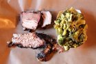 Pork belly, beef brisket, and “Cora’s broccoli salad” — a nice complement to the meats, which I’d never tried — at Fette Sau in Williamsburg, Brooklyn. After nearly two decades, Fette Sau will close its doors (and its gate) forever on Sunday evening, December 21.