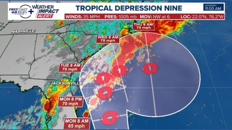 As Hurricane Humberto elevated to a Category 4 storm with wind speeds as high as 145 mph as it moves towards the Bahamas, a new storm, dubbed Tropical Depression Nine, was announced by the National Hurricane Center on Saturday morning.