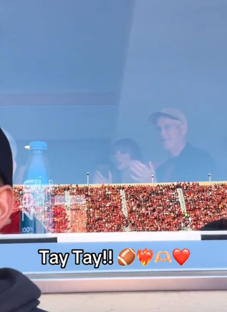 Taylor Swift attempts to avoid the cameras while cheering on Travis Kelce at Chiefs vs Raiders game
