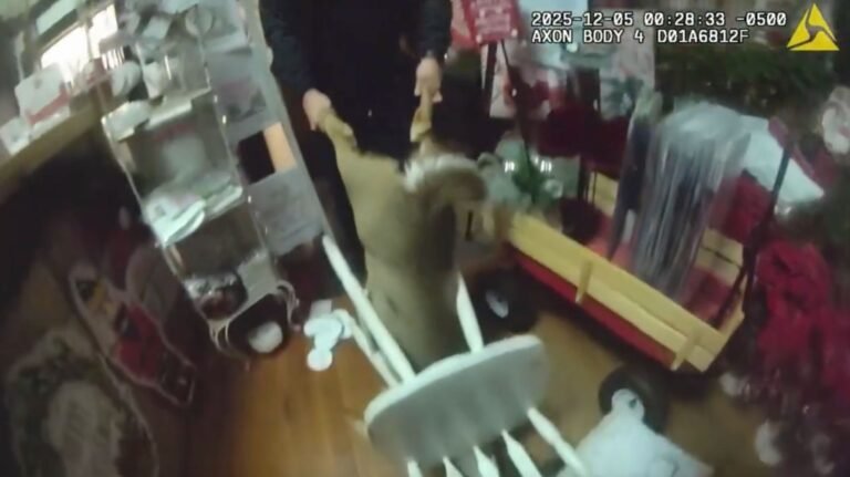 Chaotic video shows cops frantically rescuing deer that went buck wild in Christmas store and got stuck in chair