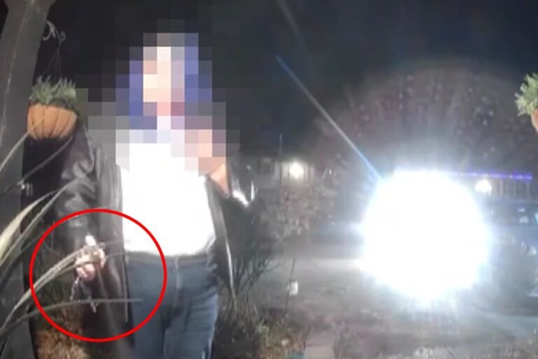 The sick act was caught on a doorbell camera outside an Evansville, Indiana, home just after midnight on Sunday.