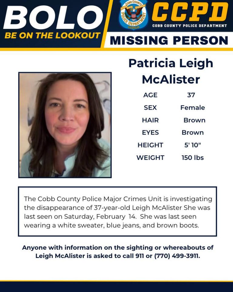 McAlister, who shares a 4-year-old son with her husband, Rob, last talked to her family the night she left, telling them she would be returning home the next day but could stay in The Peach State an extra day.